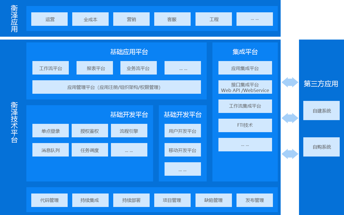 對于已有系統(tǒng)集成能力的企業(yè),可以使用衡澤技術(shù)平臺將衡澤ERP應(yīng)用集成到企業(yè)的信息化平臺之中。